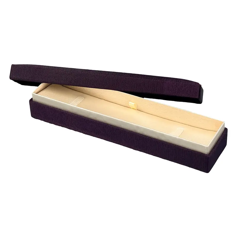 PURPLE TEXTURED FABRIC EXTERIOR WITH CREAM SATIN DETAIL ON BOTTOM OF BOX