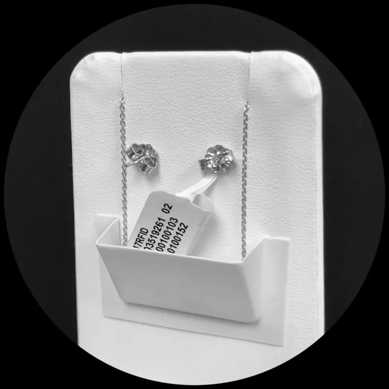 White leatherette. Use for earrings and/or pendants. Paper pocket for holding excess chain as well as compact storage in your safe. Available in smaller option (EPSNWHT),