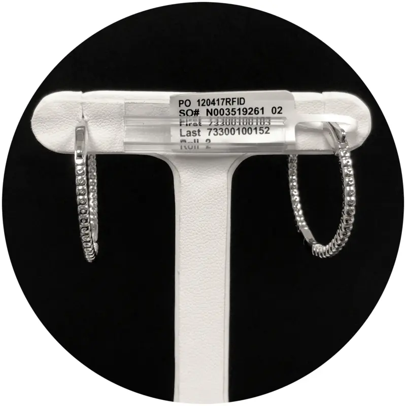 White leatherette with slits for studs or drops. Plastic hidden clip in back for tag holder. Also available in 3.25" height (ETSNWHT).