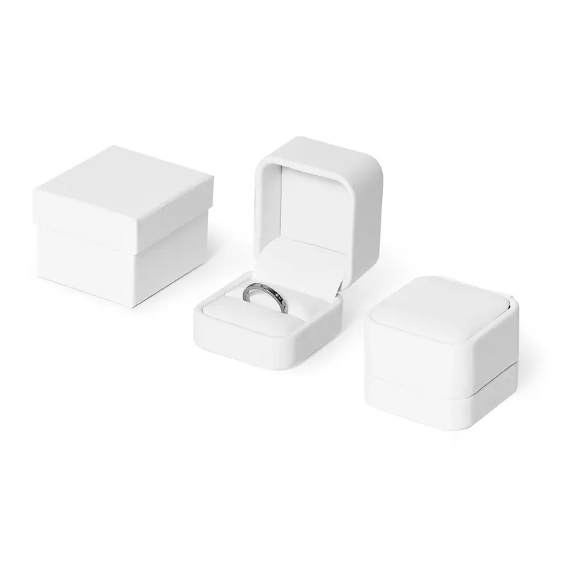 WHITE LEATHERETTE SINGLE RING BOX WITH WHITE TWO PIECE OUTER BOX